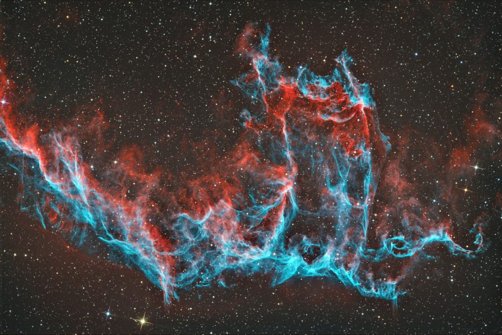 Trójkąt Pickeringa Simeis 3-188, NGC 6960, Ha-OIII Fot. Karol Wenerski.