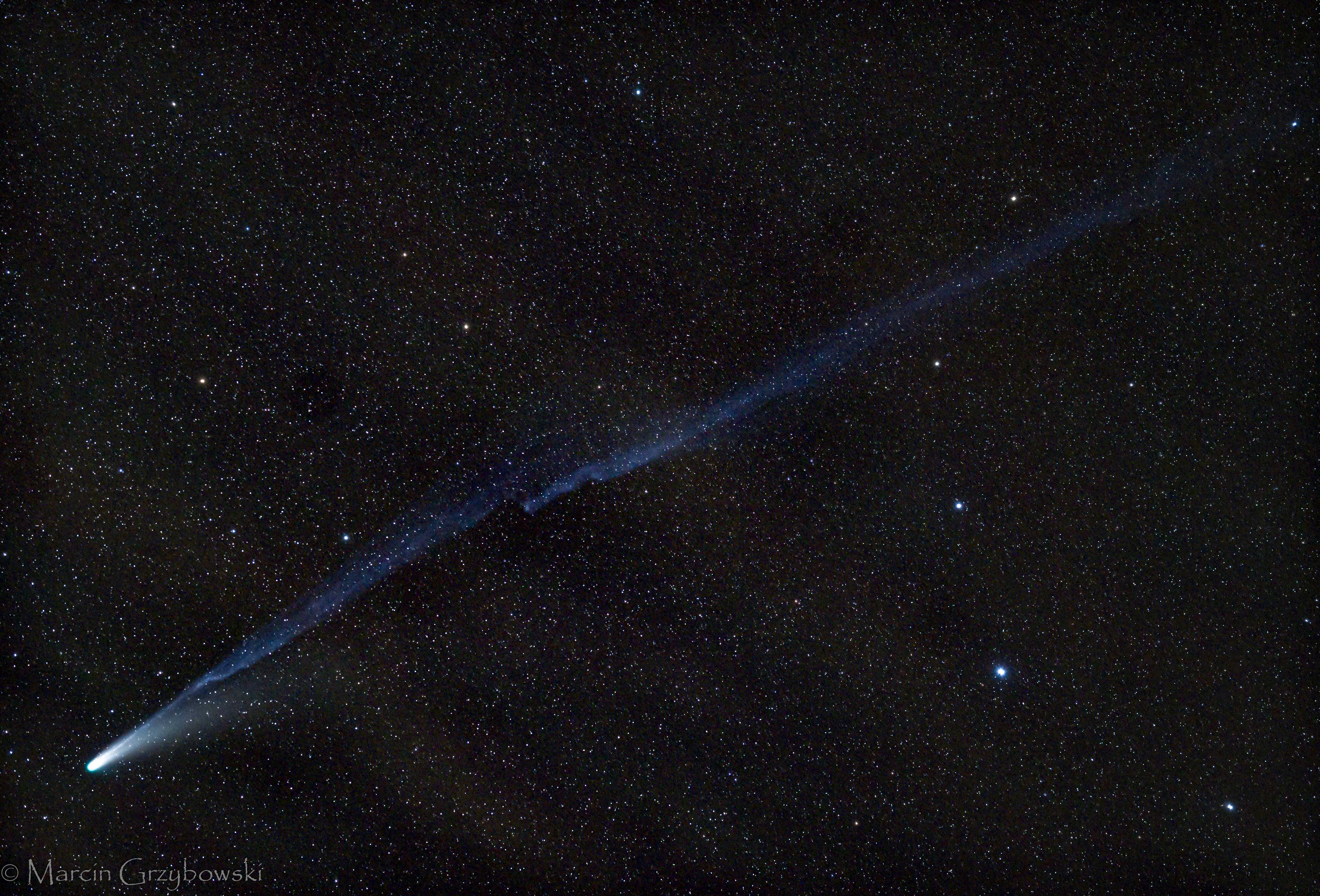 – Jestem samoukiem, ale zawsze wychodziłem z założenia, że nie będę zastawiał się tylko książkami i czytał. W pierwszej kolejności były obserwacje, a dopiero wiedzę o obserwowanych obiektach czerpałem z książek. Wyjątkiem w tej kwestii był oczywiście drukowany atlas nieba, bo na podstawie atlasu odnajdywałem zaznaczone w nim obiekty. Tak się złożyło, że w 1996 i 1997 roku na niebie pojawiły się dwie bardzo jasne komety. W 1996 roku była to kometa Hyakutake, a rok później kometa Hale’a-Boppa. Nazwy komet pochodzą od ich odkrywców, często miłośników astronomii. Pojawienie się tych dwóch jasnych komet jeszcze bardziej spotęgowało moje zainteresowanie gwiaździstym niebem. Komety były niesamowicie jasne, a warkocz pierwszej z nich sięgał niemal 60 stopni. Pamiętam noc obserwacyjną z 25 marca 1996 roku, kiedy kometa z długim warkoczem widoczna była w pobliżu zenitu na tle gwiazdozbioru Małej i Wielkiej Niedźwiedzicy. Obserwacje nieba pochłonęły mnie do tego stopnia, że niekiedy zdarzyło mi się zaniedbywać naukę w szkole. Zrobiłem sobie wtedy kserokopie atlasu nieba J. Dobrzyckiego i to tam rysowałem każdej nocy położenie komety Hale’a-Boppa razem z warkoczami (gazowym i pyłowym).