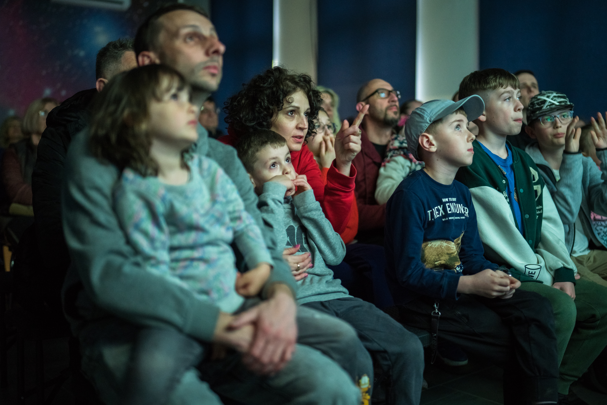 Niestety zachmurzone niebo, a później także opady nie pozwoliły na obserwacje zjawisk zachodzących na Słońcu oraz podziwianie obiektów głębokiego kosmosu. W zamian za to Bartek Pilarski z dużą swadą wygłosił prelekcję o tym , co uczestnicy pikniku mogliby zobaczyć, gdyby było czyste niebo.
