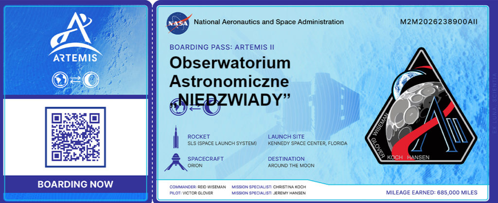 Dla wszystkich, którzy chcieliby zapisać się w annałach kosmicznych podróży, NASA przygotowała intrygujące zaproszenie do udziału w misji wokół Księżyca. Mogą wziąć w niej udział wszyscy chętni. My już jesteśmy zapisani i mamy kartę pokładową, a nawet dwie.