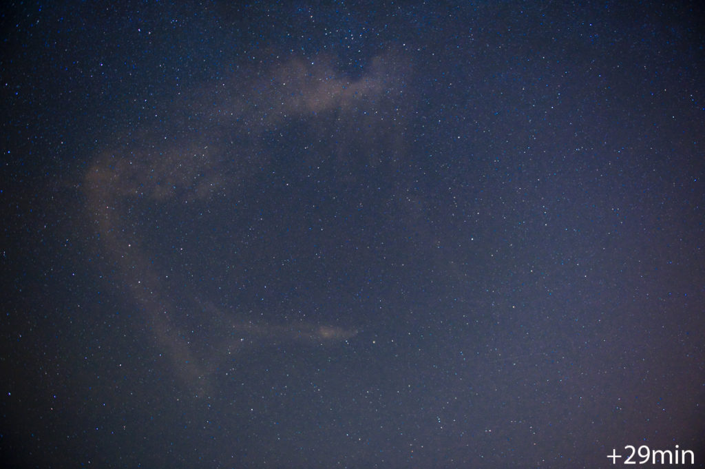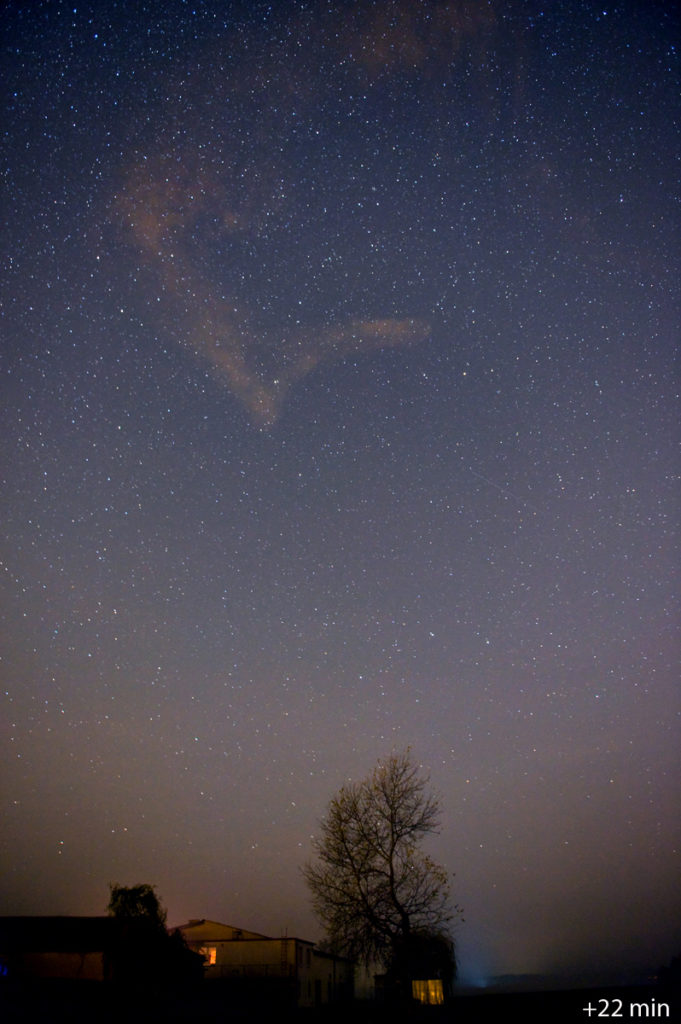 Poniżej prezentujemy sekwencję zdjęć ukazującą ewolucję śladu bo bolidzie który był widoczny nieuzbrojonym okiem przez blisko pół godziny, natomiast fotograficznie przez co najmniej przez 1 godzinę. Zdjęcia w sekwencji wykonał Marek Nikodem