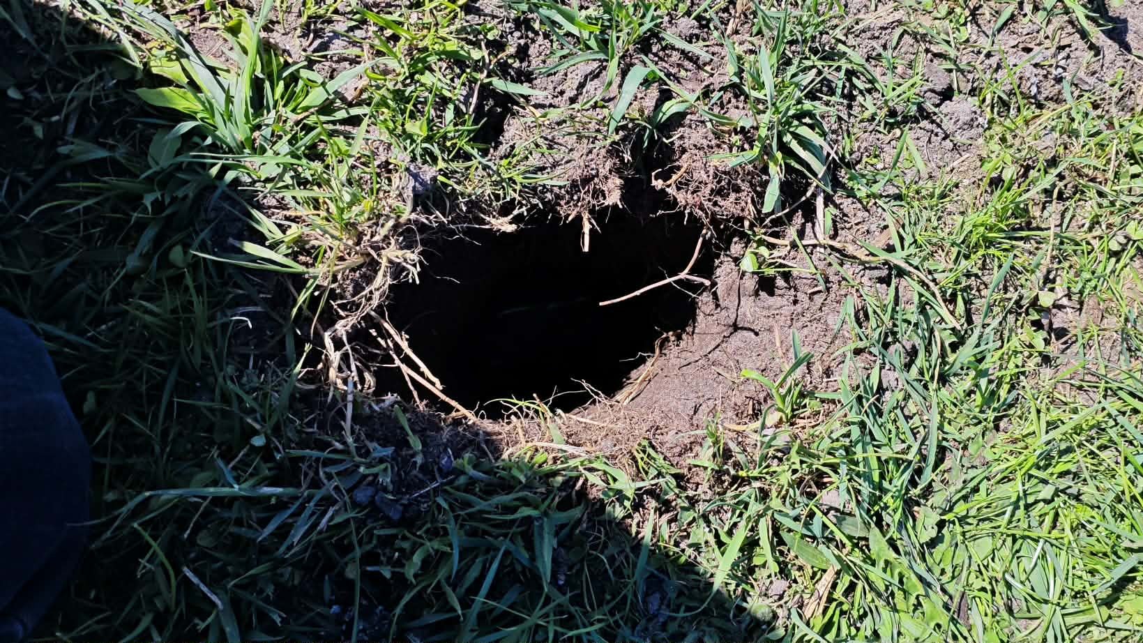 Niewielka dziura o lekko eliptycznym kształcie wybita w glebie przez meteoryt
