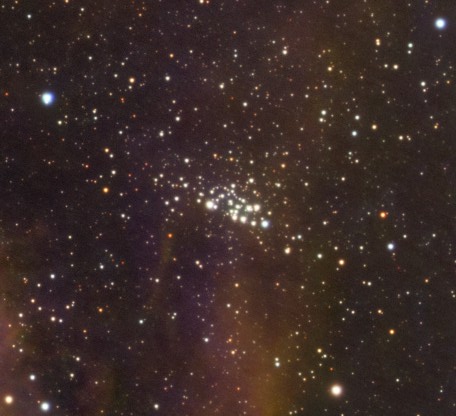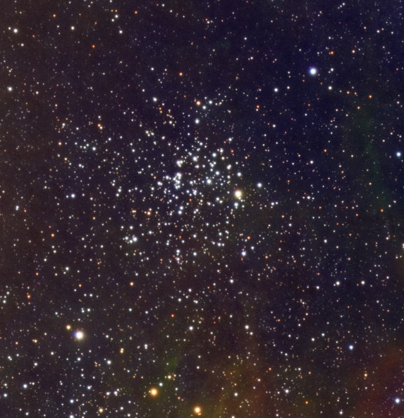 Cytujac Wikipedię: Według obserwacji Åke Wallenquista z 1959 roku gromada w promieniu 9′ od centrum zawiera 193 gwiazdy (gęstość wynosi około 3 gwiazdy na parsek²). Najjaśniejsza z nich należąca do ciągu głównego ma jasność obserwowaną 11,0m i należy do typu widmowego B7. Jaśniejsze od niej są dwa żółte olbrzymy – jasność pierwszego sięga 7,77m (typ widmowy F9), natomiast drugiego – 8,22m (typ G8).